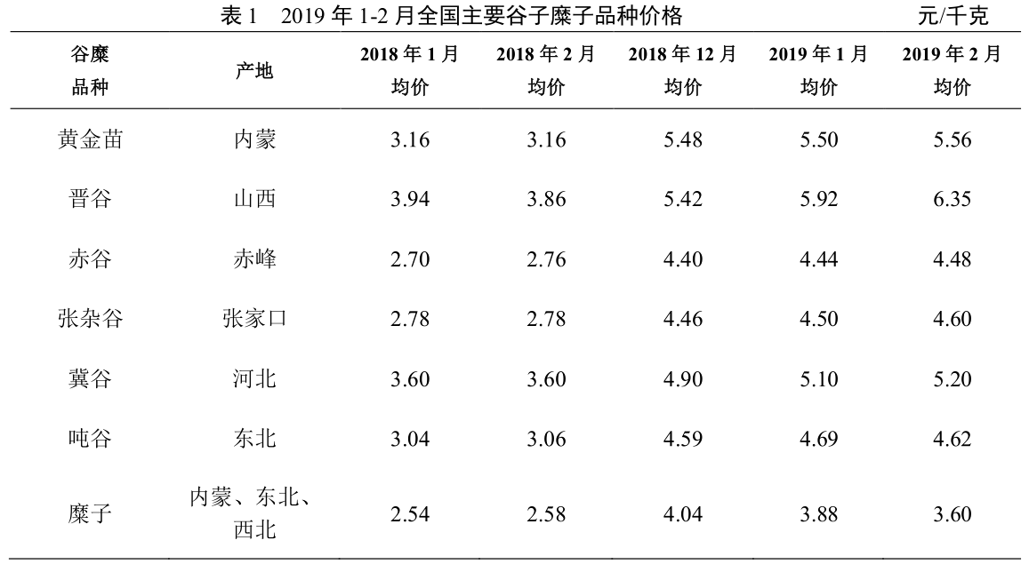 2019 年 1-2 月谷子市场动态监测报告