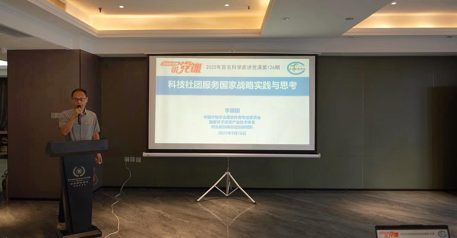 中国作物学会粟类作物专业委员会会长、国家谷子高粱产业技术体系副首席科学家、河北省杂粮杂豆创新团队首席专家李顺国研究员,以“科技社团服务国家战略的实践与思考”为题讲授党课。