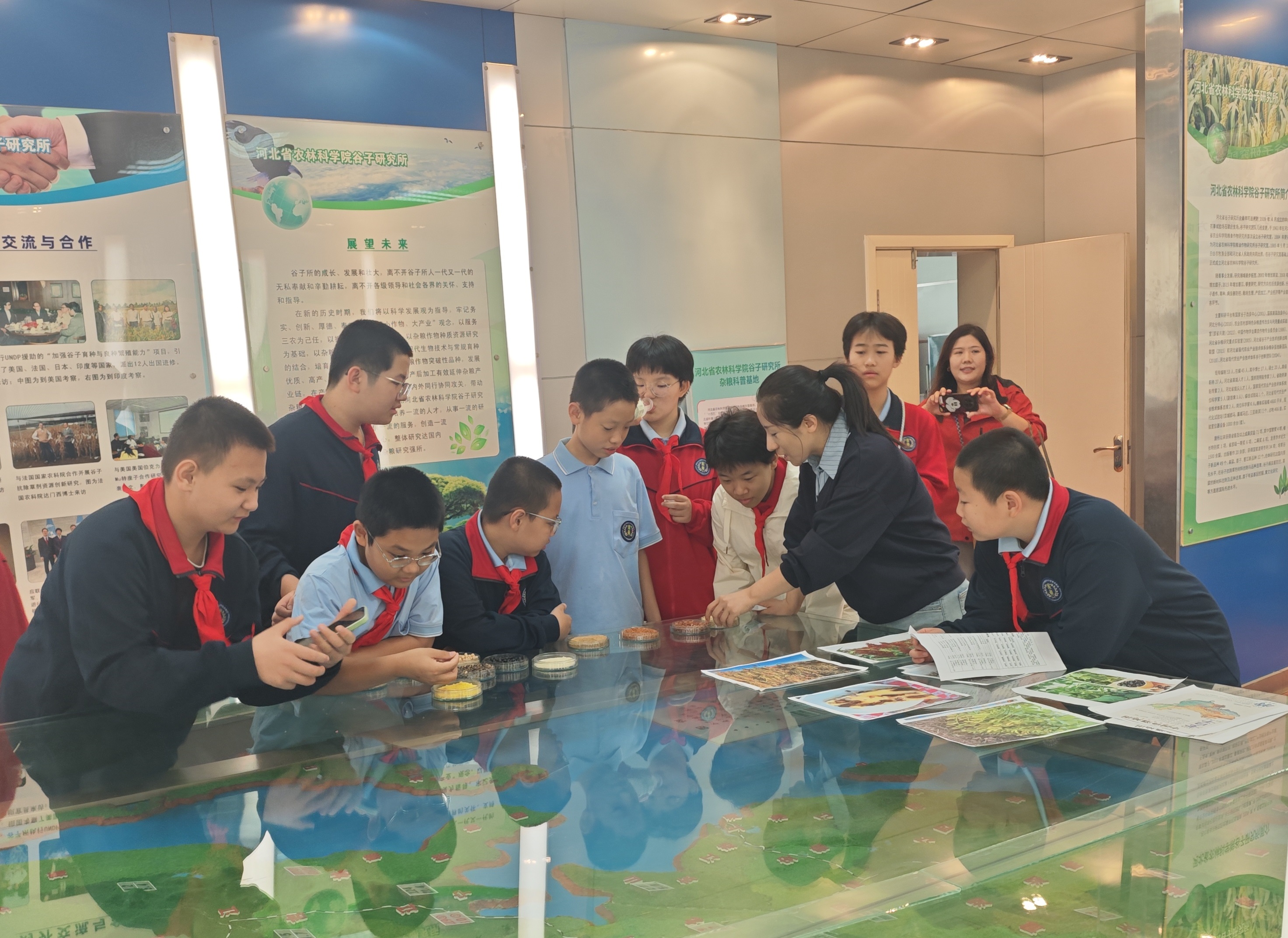 全国科普月活动期间,9 月 27 日,石家庄市第四十中学组织初一年级 45 名学生,走进中国作物学会粟类作物专业委员会依托单位 —— 河北省农林科学院谷子研究所杂粮科普基地,开展科普研学实践活动。此次活动以 “探秘科技力量、解锁舌尖科学、传承农耕文化” 为核心,让学生在实践中感受科学与农耕的深度融合。