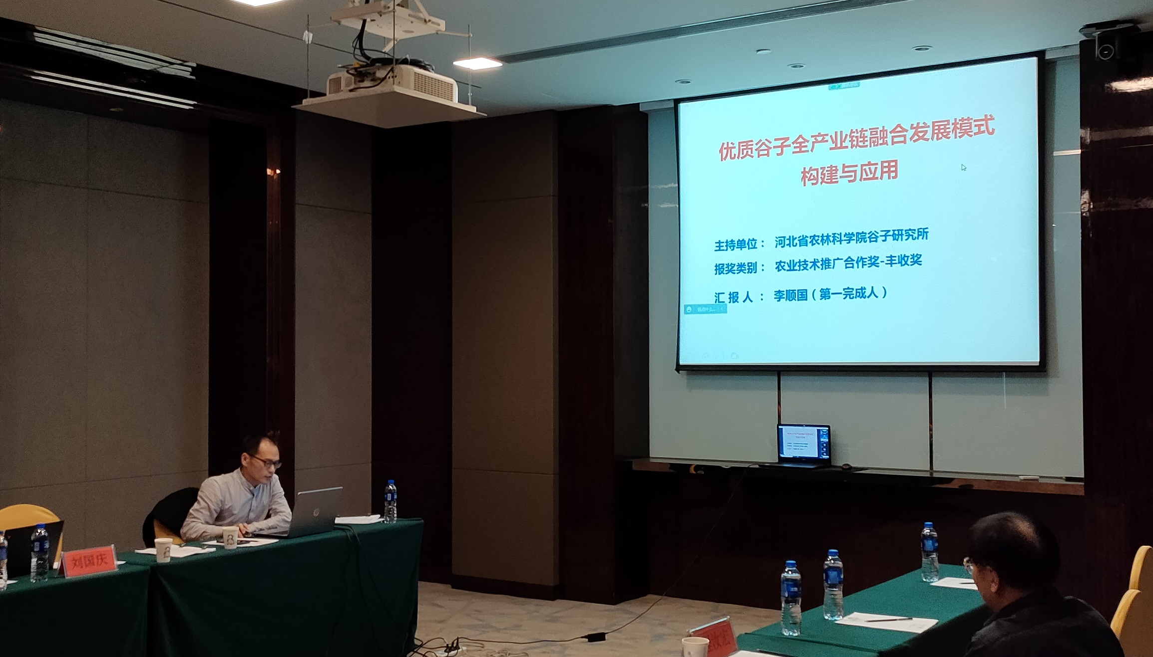 河北省农林科学院谷子研究所刘国庆研究员和李顺国研究员分别就上述两项成果进行汇报。专家组听取了汇报,审阅了相关材料,经质询讨论,形成评价意见。“糜子抗倒、抗旱、优质新品种选育与应用”项目创制和筛选出糜子高抗倒伏、抗旱和优质的新种质;解析了糜子分蘖性、抗旱性和糯性等性状的遗传机制;明确了糜子不同光周期条件下营养生长向生殖生长转换的条件和幼穗发育过程。该成果还明确了新品种最佳栽培技术,开发了配套高效施肥技术和化学除草技术,集成了新品种配套高产栽培技术,实现了糜子轻简化生产,提升了糜子生产水平。成果整体达到同类研究的国际先进水平,其中抗倒种质的创制和遗传解析国际领先。“优质谷子全产业链融合发展模式构建与应用”项目构建了“鉴评体系推优、科企对接转化、良种良法提质、品牌培育增值”的优质谷子全产业链融合发展模式;制定了“优质、抗除草剂、宜机收”谷子品种鉴评标准,建立三级优质谷子品种评价体系;集成了以“化肥农药减施、农机农艺结合”为核心的绿色高效技术模式、创建12个全产业链一体化示范区,药肥减施,实现优质谷子品种更新换代。该项目促进了我国谷子产业转型升级与高质量发展,模式得到地方政府和全国同行的认可和关注,对其它特色产业具有重要的借鉴价值,该成果整体达到国内领先水平。