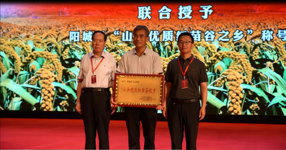 会上,山西省名优土特新产品协会、山西省杂粮学会联合授予阳城县人民政府“山西优质红苗谷之乡”荣誉牌匾