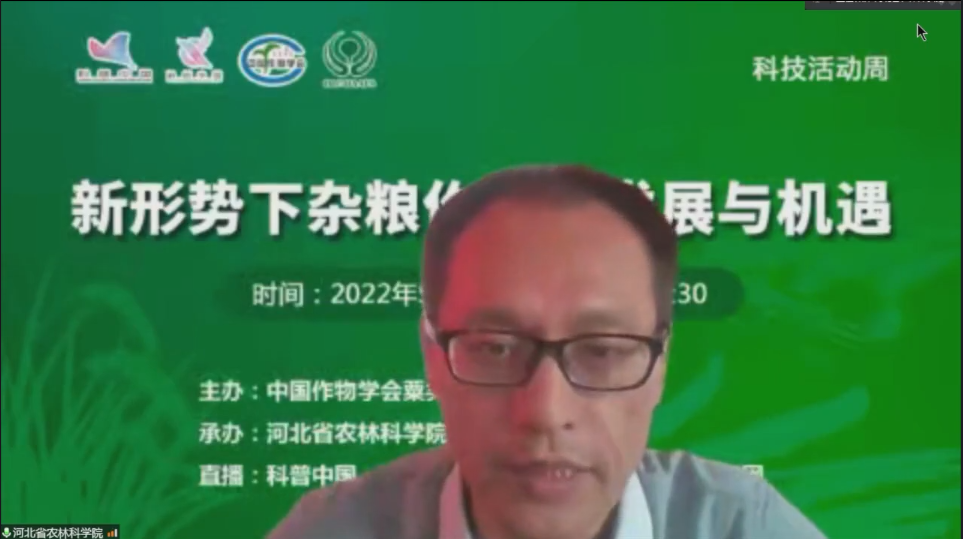 2022年5月25日,全国科技活动周期间,由中国作物学会支持,中国作物学会粟类作物专业委员会主办、河北省农林科学院谷子研究所承办的“新形势下杂粮作物的发展与机遇”科普报告会在线召开。