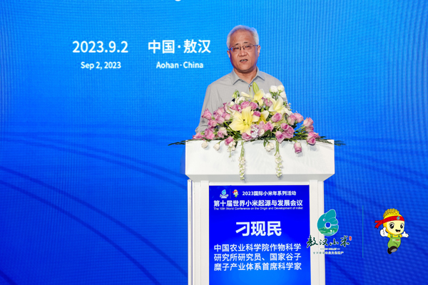 在产业传承农耕文化环节,中国社会科学院考古研究所党委委员、科研处处长、博士生导师刘国祥做了《旱作农业背景下的西辽河流域早期青铜文明》主题发言;中国农业科学院作物科学研究所研究员、国家谷子糜子产业体系首席科学家刁现民做了《谷子种业的形成与发展》主题发言;沈阳农业大学教授博士生导师、世界生产力科学院院士、沈阳农业大学国家农业微生物种质资源实验室主任张世宏做了《微生物与有机小米》主题发言;赤峰市农牧科学研究所研究员、智慧农业与产业经济研究室主任、内蒙古谷子育种联合攻关首席专家、国家谷子高粱产业技术体系春谷育种岗位科学家王显瑞做了《中国春谷育种现状及未来展望》主题发言。